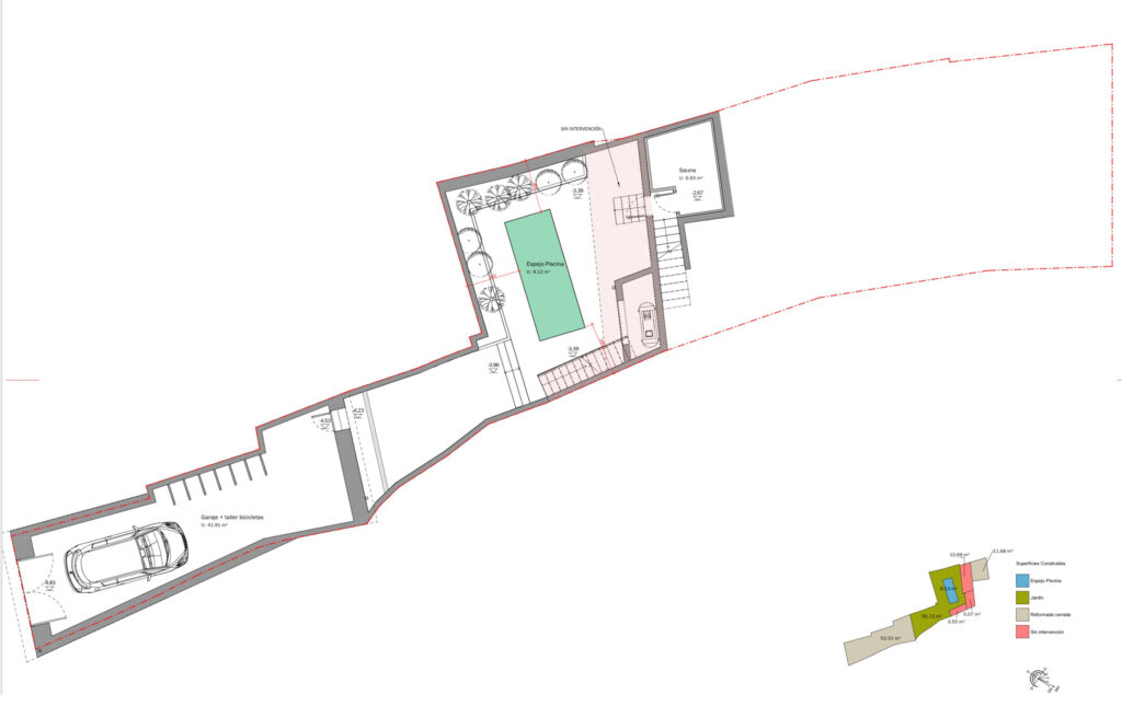 - Garden & Garage Level: Swimming pool with outdoor shower & WC, landscaped garden, garage for two vehicles.